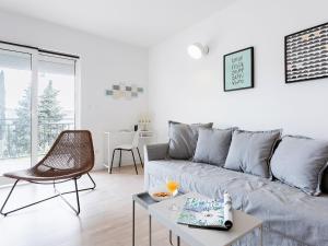 Das Apartment Black & White ST - Komfortables Zwei-Zimmer-Apartment mit Balkon liegt weniger als 1 km vom Strand Jezinac entfernt in Split und bietet kostenfreies WLAN sowie Klimaanlage. Die Unterkunft verfügt über ein Zimmer mit zwei Schlafzimmern, einen Balkon und Meerblick.