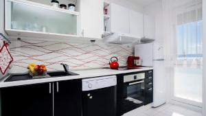 Do dyspozycji znajdują się dwie sypialnie oraz dwie łazienki wyposażone w wannę, prysznic, bidet oraz dodatkowe toalety. Zapewniamy bezpłatne kosmetyki takie jak szampon i odżywka do włosów. W pełni wyposażony aneks kuchenny posiada płytę grzejną, piekarnik, mikrofalówkę, zmywarkę, lodówkę, toster i czajnik elektryczny wraz ze wszystkimi niezbędnymi naczyniami oraz stołem jadalnym do przygotowywania posiłków i ich spożywania. W apartamencie znajduje się także żelazko z deską do prasowania oraz biurko do pracy, podłogi stanowią drewno/parquet połączone miejscami z kaflami lub marmurem. Dodatkowo dostępna jest rozkładana sofa oraz dostawka - razem trzy miejsca do spania.