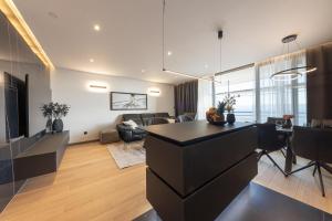 W apartamencie zapewniono klimatyzację z indywidualną regulacją oraz ogrzewanie dla komfortu przez cały pobyt. W pełni wyposażony aneks kuchenny zawiera płytę grzewczą, lodówkę, zmywarkę, piekarnik, mikrofalówkę, naczynia kuchenne oraz stół jadalny do wygodnego przygotowywania i spożywania posiłków. Do dyspozycji są również ręczniki i pralka.