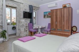 Devivi Apartments dało nam świetne wrażenie dzięki staremu budynkowi pełnemu charakteru oraz cichym, dobrze izolowanym pokojom z odsłoniętym kamieniem. Balkon był świetnym, chłodnym miejscem na odpoczynek, a lokalizacja tuż obok Pałacu Dioklecjana z masą przystępnych cenowo knajp w okolicy była strzałem w dziesiątkę. Miejsce było czyste i dobrze wyposażone, a mimo kilku dziwnych pokrowców na materace, spaliśmy całkiem nieźle i naprawdę dobrze się tam czuliśmy.