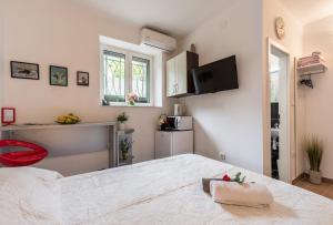 Der Flughafen Split ist 23 km entfernt, ein kostenpflichtiger Shuttleservice steht zur Verfügung. Das Zimmer verfügt über einen Sitzbereich sowie eine voll ausgestattete Kochnische mit Mikrowelle, Kühlschrank, elektrischem Wasserkocher, Toaster sowie Tee- und Kaffeezubereitungsmöglichkeiten. Zur Ausstattung gehören außerdem Heizung, Federkissen, Bettwäsche und Handtücher sowie ein Ankleideraum mit Kleiderschrank.