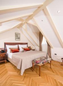 Pokoje w Judita Palace charakteryzują odsłonięte kamienne ściany, parkietowe podłogi oraz eleganckie meble. Każdy klimatyzowany pokój wyposażony jest w telewizor satelitarny z płaskim ekranem, dźwiękoszczelność, sejf mieszczący laptopa oraz część wypoczynkową z sofą lub rozkładaną sofą. Prywatne łazienki posiadają prysznice typu walk-in lub wanny wraz z szlafrokami, kapciami i bezpłatnymi kosmetykami.