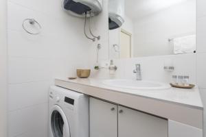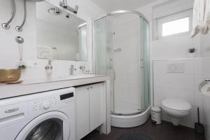 W apartamencie znajduje się pełni wyposażona kuchnia z piekarnikiem, płytą grzewczą, lodówką, tosterem oraz ekspresem do kawy i zestawem do parzenia herbaty i kawy. W części wypoczynkowej z podłogą drewnianą goście znajdą sofę rozkładaną oraz szafę do przechowywania rzeczy. Dodatkowe udogodnienia obejmują dźwiękoszczelne ściany zapewniające spokój podczas pobytu, klimatyzację dla komfortu termicznego oraz ogrzewanie na chłodniejsze dni. Do dyspozycji jest także żelazko wraz z deską do prasowania, w pobliżu znajdują się pralka i suszarka na ubrania.