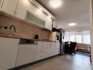 Nowoczesne i czyste mieszkanie miało dwie klimatyzacje - w sypialni i salonie. Do dyspozycji była pralka, zmywarka oraz duża lodówka z kranikiem na zimną wodę. Na powitanie czekało wino i soki gratis. Szybki kontakt z gospodarzem i łatwy odbiór kluczy przez skrytkę przy drzwiach wejściowych bardzo ułatwiły sprawę. W okolicy były sklepy, restauracje i kawiarnie, a dojazd komunikacją miejską był wygodny. Darmowe miejsca parkingowe znajdowały się niedaleko, a spacer na plażę Trstenik zajmował około 10-15 minut, natomiast do centrum Splitu szło się około pół godziny.