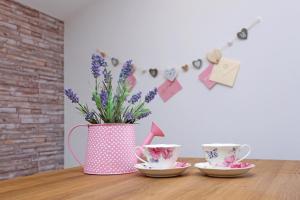 L’appartamento comprende una camera da letto e un soggiorno arredato con due letti singoli e un divano letto, oltre a una TV a schermo piatto per l’intrattenimento. Gli ospiti possono usufruire di un angolo cottura attrezzato con piano cottura, frigorifero, lavastoviglie, forno, macchina del caffè, tostapane e tutta la biancheria necessaria insieme al bollitore elettrico.