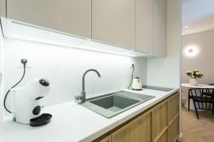 Klimatyzowany apartament składa się z jednej sypialni, salonu wyposażonego w rozkładaną sofę i część wypoczynkową oraz w pełni wyposażonego aneksu kuchennego ze sprzętem takimi jak płyta grzewcza, lodówka, zmywarka do naczyń, mikrofalówka, czajnik elektryczny, ekspres do kawy i stół jadalny. Łazienka posiada prysznic typu walk-in bez stopnia oraz kosmetyki takie jak szampon i mydło do ciała. Dodatkowe udogodnienia obejmują ręczniki, pościel wraz ze sztucznymi poduszkami bez pierza, ogrzewanie, podłogi wyłożone płytkami lub marmurem, szafę lub miejsce do przechowywania ubrań, biurko do pracy oraz dostępność łóżeczka dziecięcego.